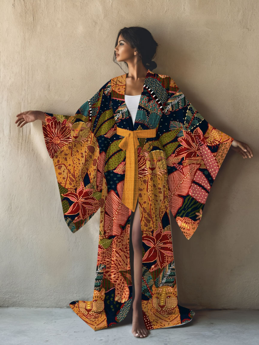 Art Resort Pattern Kimono Robe