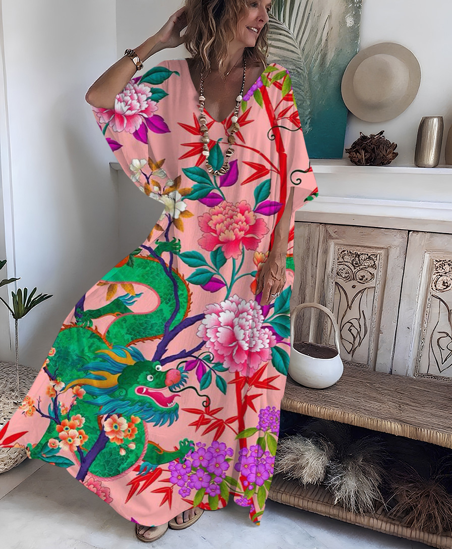 Artistic Linen V-neck Women's Casual Robe