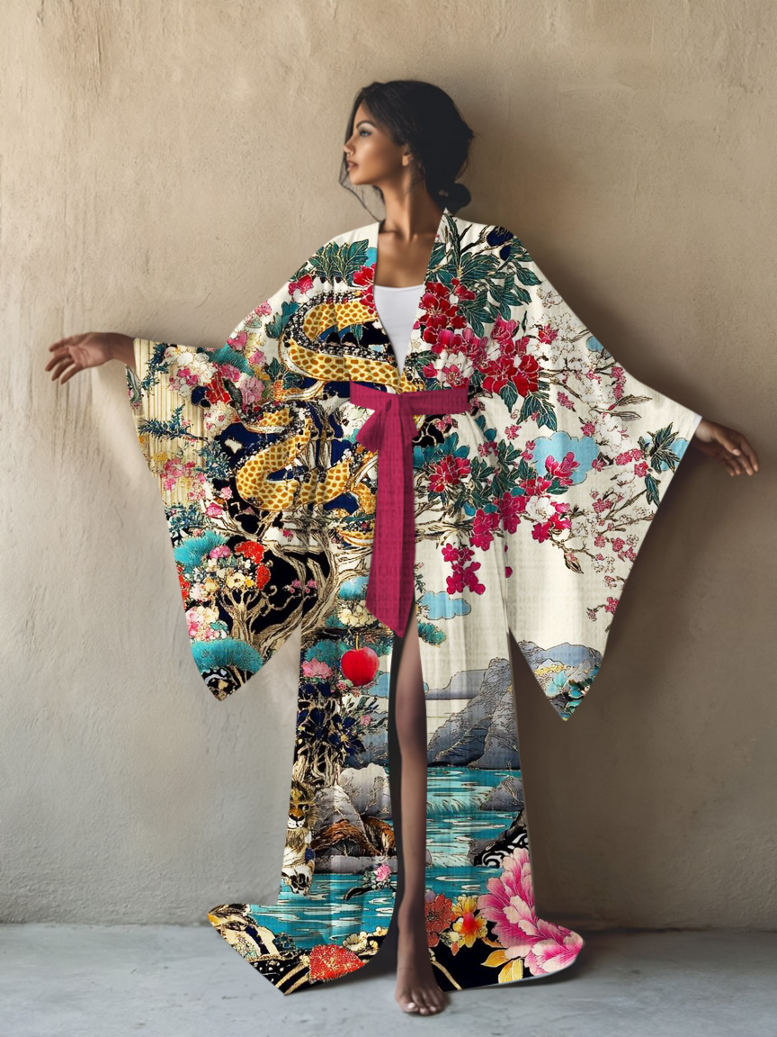 Artistic pattern resort kimono robe