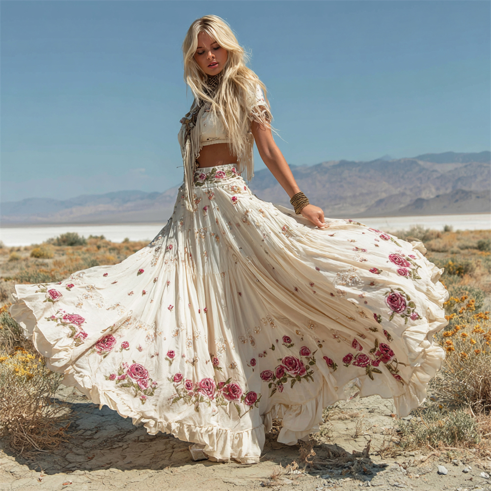 Boho Floral Art Women's Flowing Halter Long Skirt