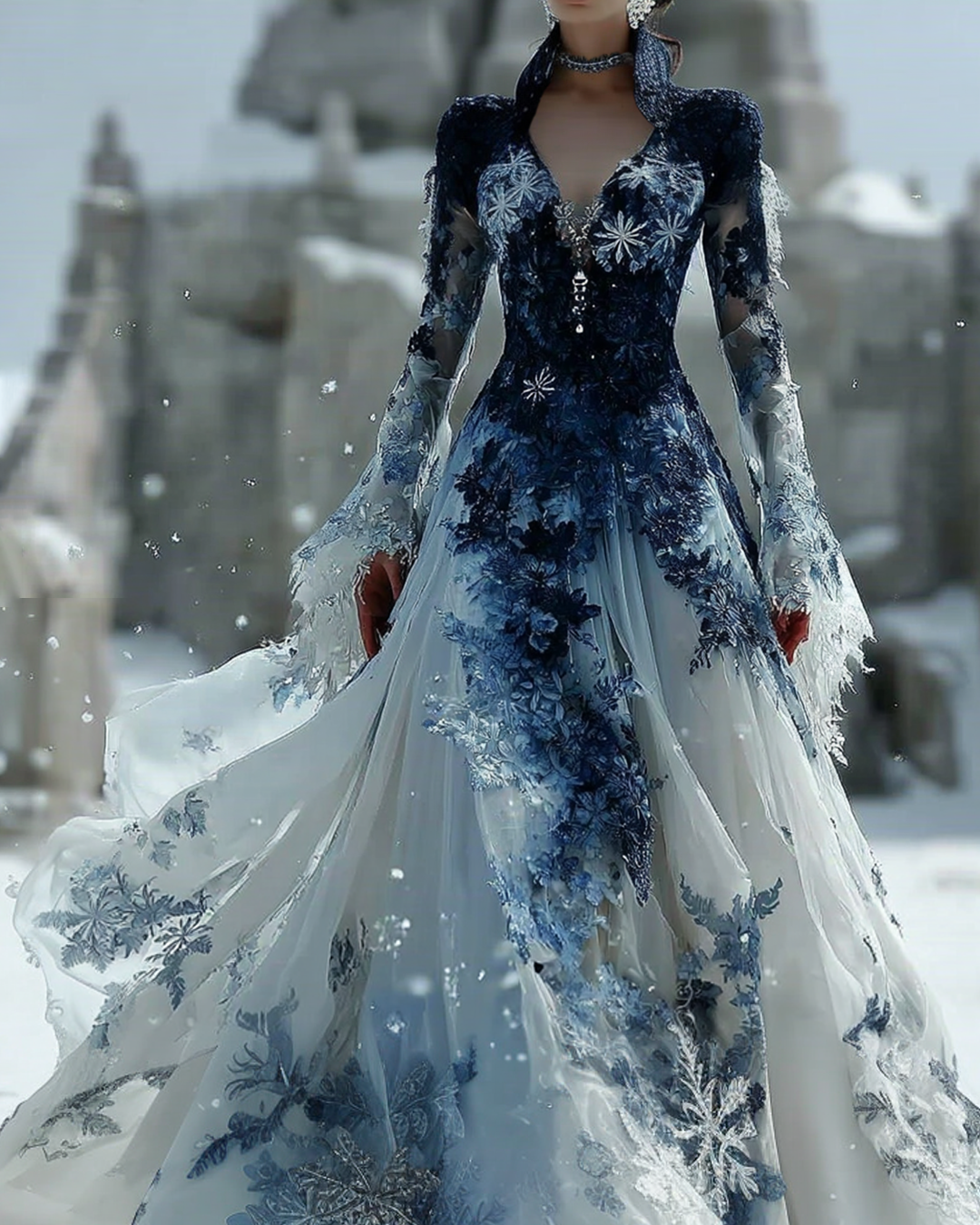Christmas Themed Gradient Snowflake Embroidery Lace Patchwork Dress 2611
