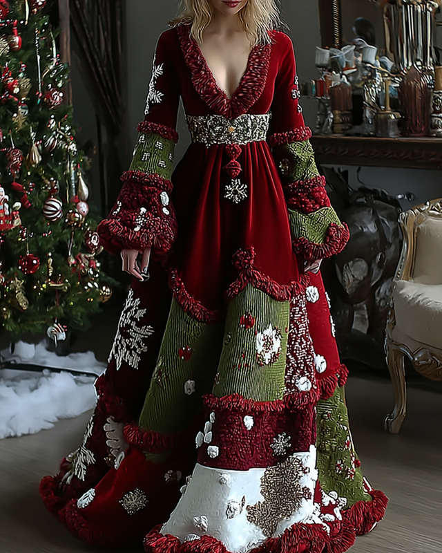 Elegant Christmas Theme Embroidered Art Comfort Dress 7080