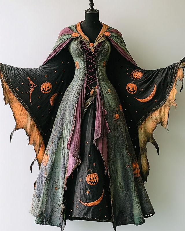 Halloween Theme Party Dark Loose Wide-Sleeved Cape Dress 90ef