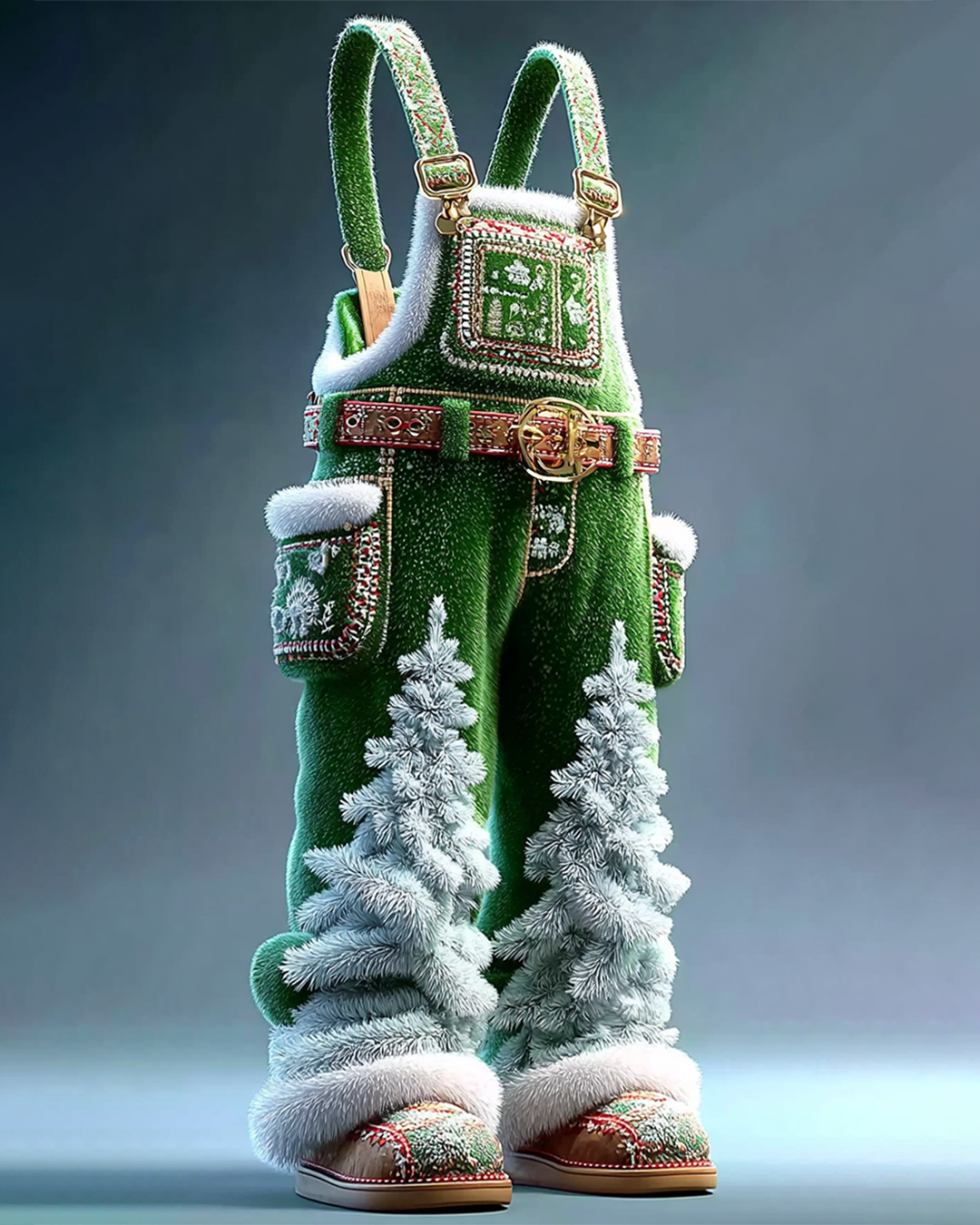 Men's Christmas-Themed Contrast-Color Christmas Tree Overalls 1279