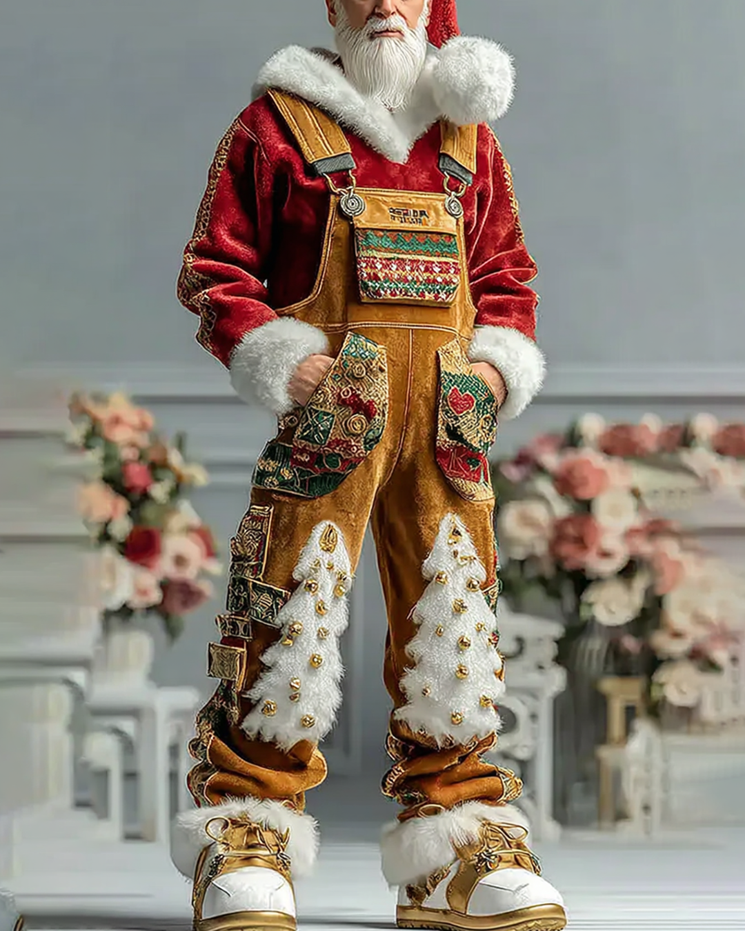 Men's Christmas-Themed Contrast-Color Christmas Tree Overalls 7031
