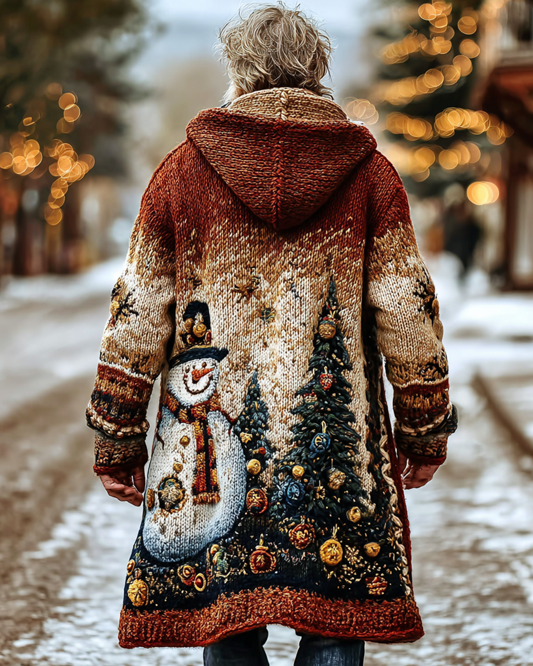 Men's Christmas-Themed Snowman Embroidered Knit Hooded Coat 1804