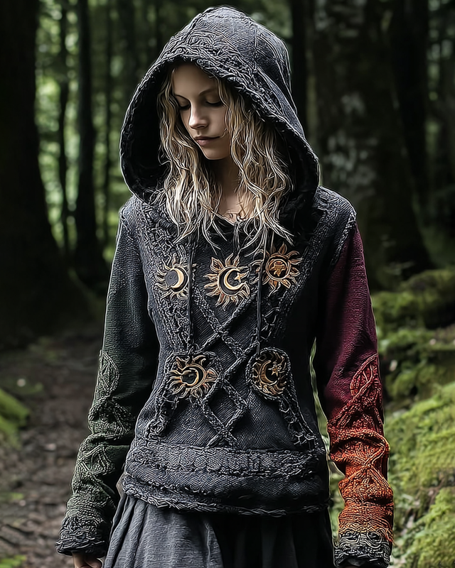 Women's Gradient Star and Moon 3D Embroidered Knitted Hoodie 1668
