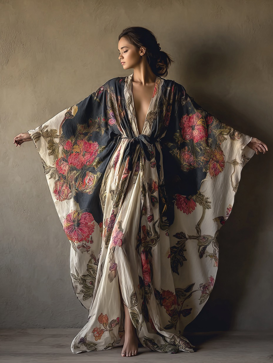 Women's Floral Impact Kimono Light Chiffon Robe (Including Belt)