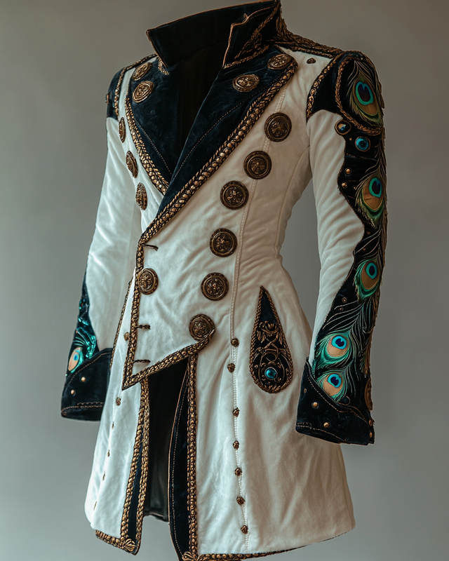 Women's Stylish Color Matching Peacock Feather Embroidery Slim Fit Jacket da19