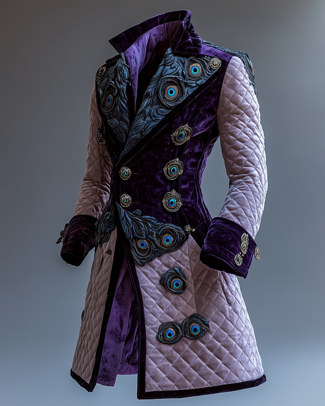 Women's Stylish Color Matching Peacock Feather Embroidery Slim Fit Jacket db55
